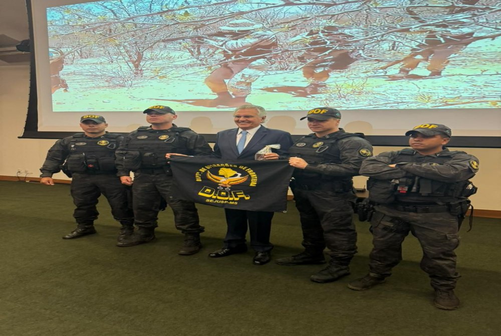 O DOF (Departamento de Operações de Fronteira) foi homenageado, na manhã desta sexta-feira (7), pelo Governador do Estado de Goiás, Ronaldo Caiado, em reconhecimento ao trabalho desenvolvido no enfrentamento aos crimes transfronteiriços em Mato Grosso do Sul.